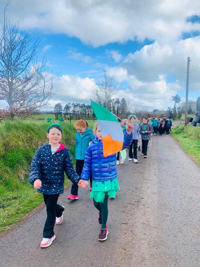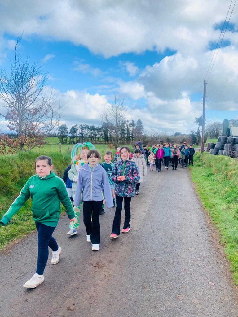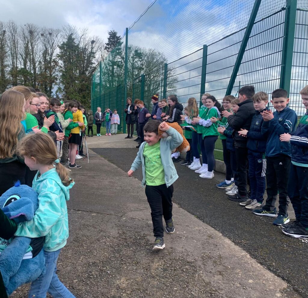 Thomas met all the children in the school at a brief assembly and then spent the rest of the morning with 5th and 6th class telling them about his journey and answering questions. There was even time for some exercises outside which the pupils thoroughly enjoyed.